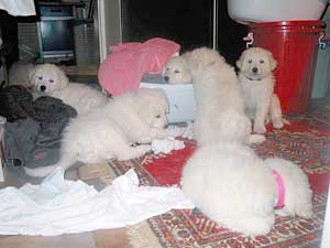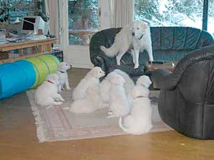 Welpen wachsen in engem Sozialverband mit unserer Familie im Haus und Garten