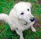 weiße, manchmal elfenbeinfarbene, manchmal auch grüne und braune, wellige Fell